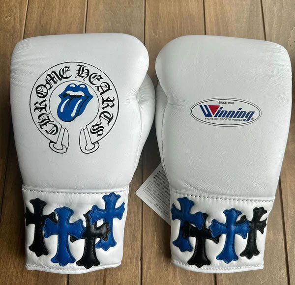 Winning boxing gloves – white blue lace-up winning training gloves – perfect for all boxers – pro-level quality – premium quality at low prices